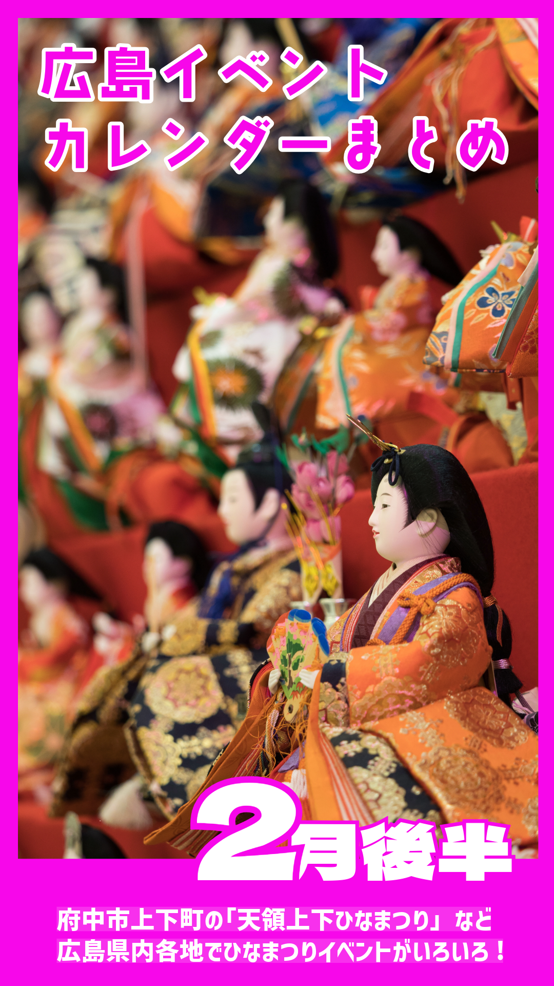 【2月後半まとめ】上下町や三原市など広島県内各地で、ひな祭りのイベントが目白押し。スポーツイベントも。★ご近所イベントカレンダー2026