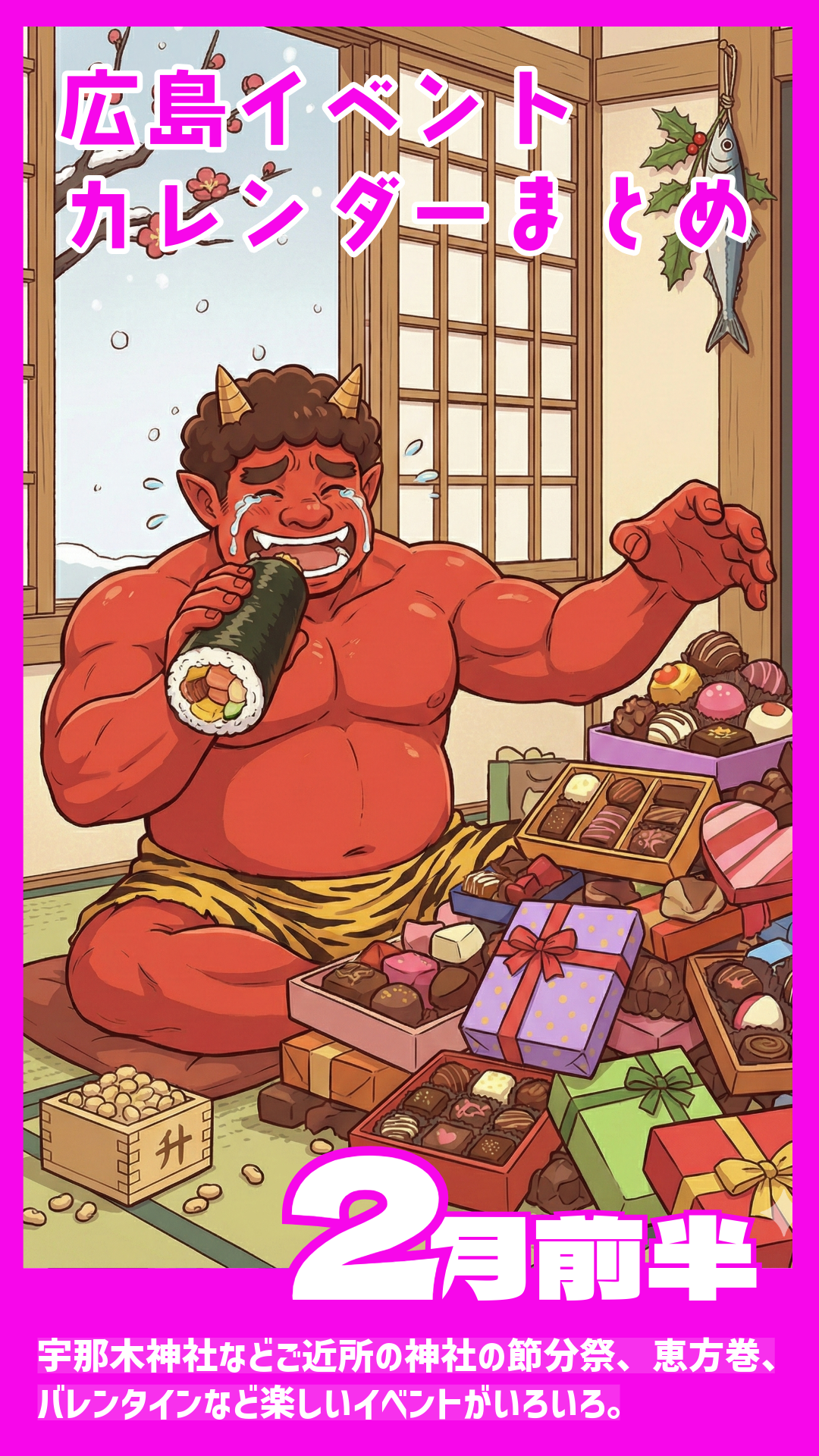 【2月前半まとめ】宇那木神社などご近所の神社の節分祭、恵方巻、バレンタインなど楽しいイベントがいろいろ。★ご近所イベントカレンダー2026