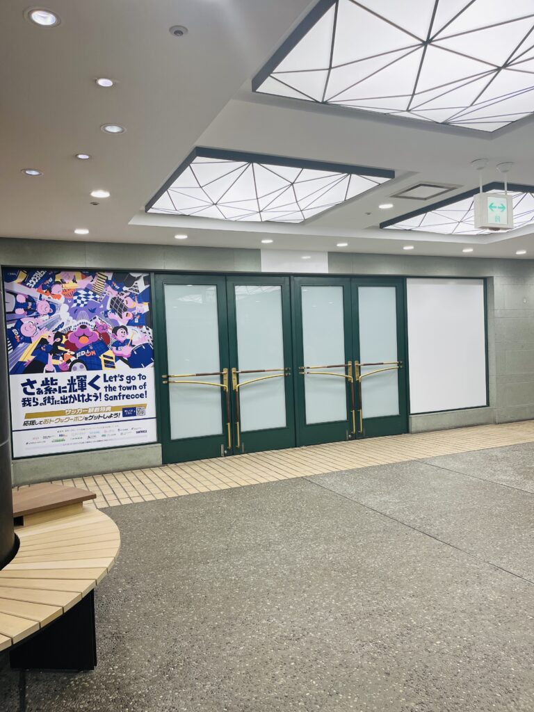 で、コチラが「ロピア パセーラ広島店(仮)」のオープン予定地だと思われます。1Fフロアからエスカレーターで下り、左側すぐのところです。