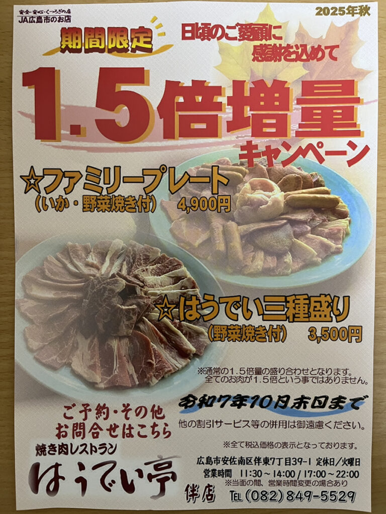 JA広島市のグループ会社が運営する、焼肉レストラン「はうでい亭 伴店」🍖😋