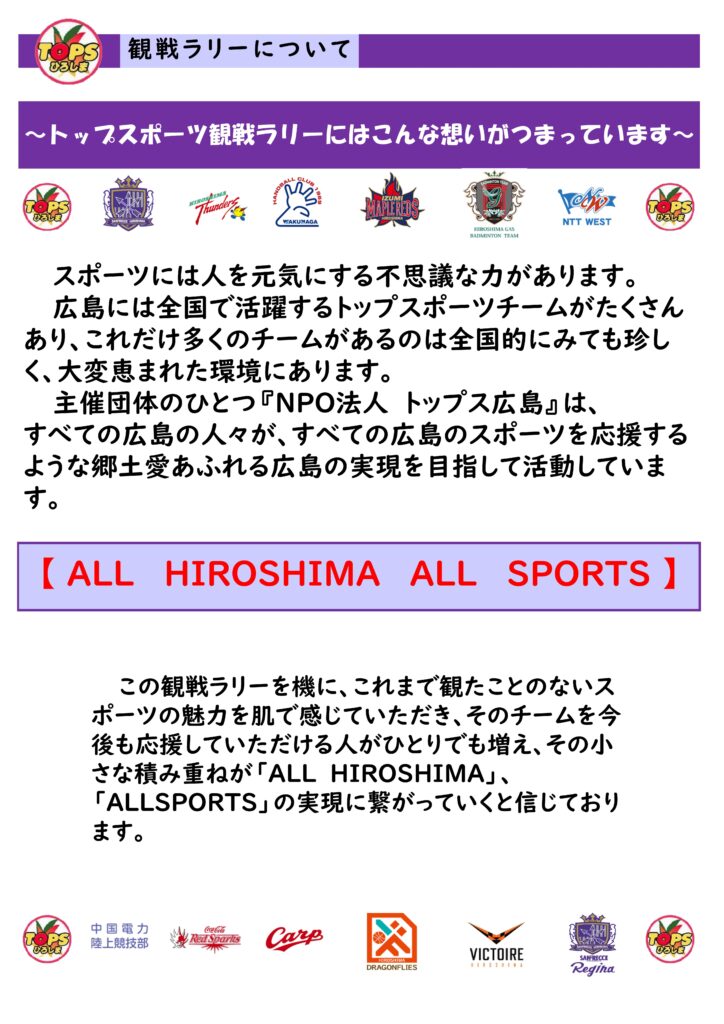 当協会では、広島市およびトップス広島と協働で『トップスポーツ観戦ラリー』を実施しております。