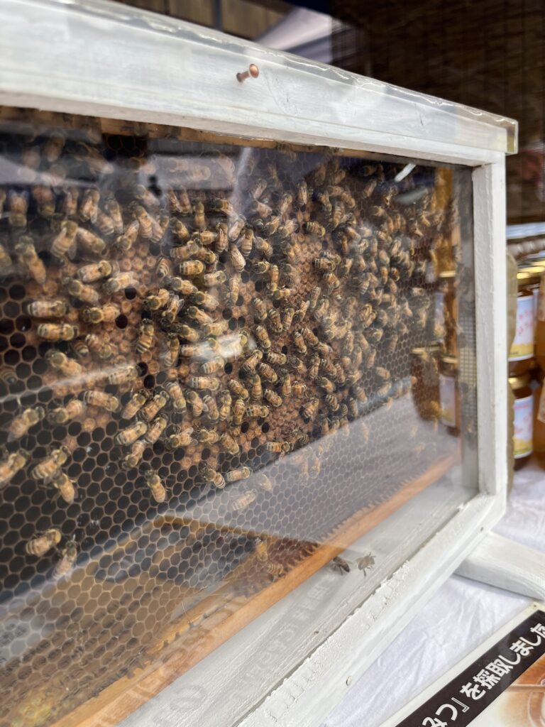 コチラはハチミツを生み出すハチの巣です。子どもたちの注目を集めていました。
