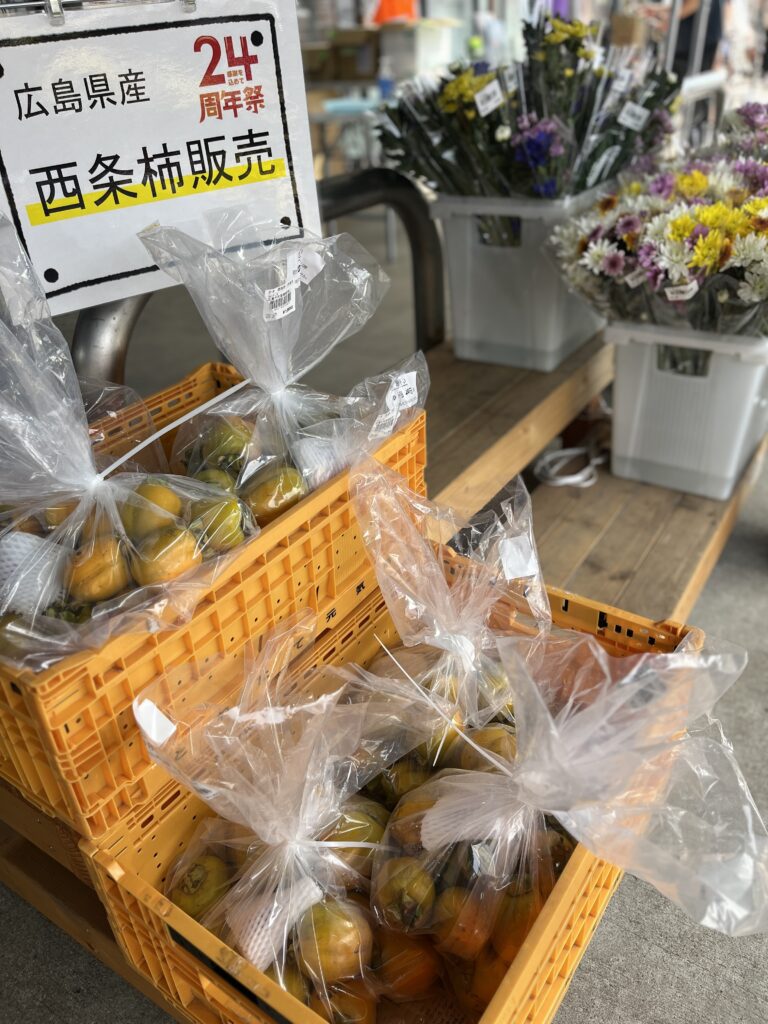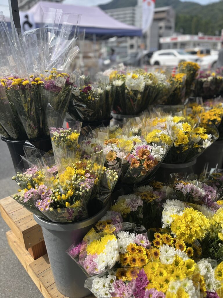 ほか、広島県内各地のいろいろおいしそうなものが並んでいました。あと、いい感じの花も売られていました。