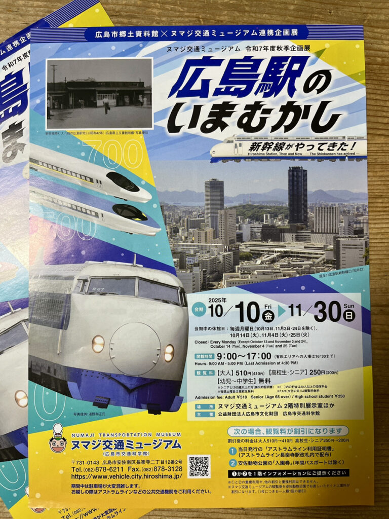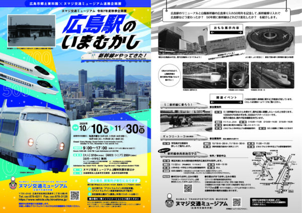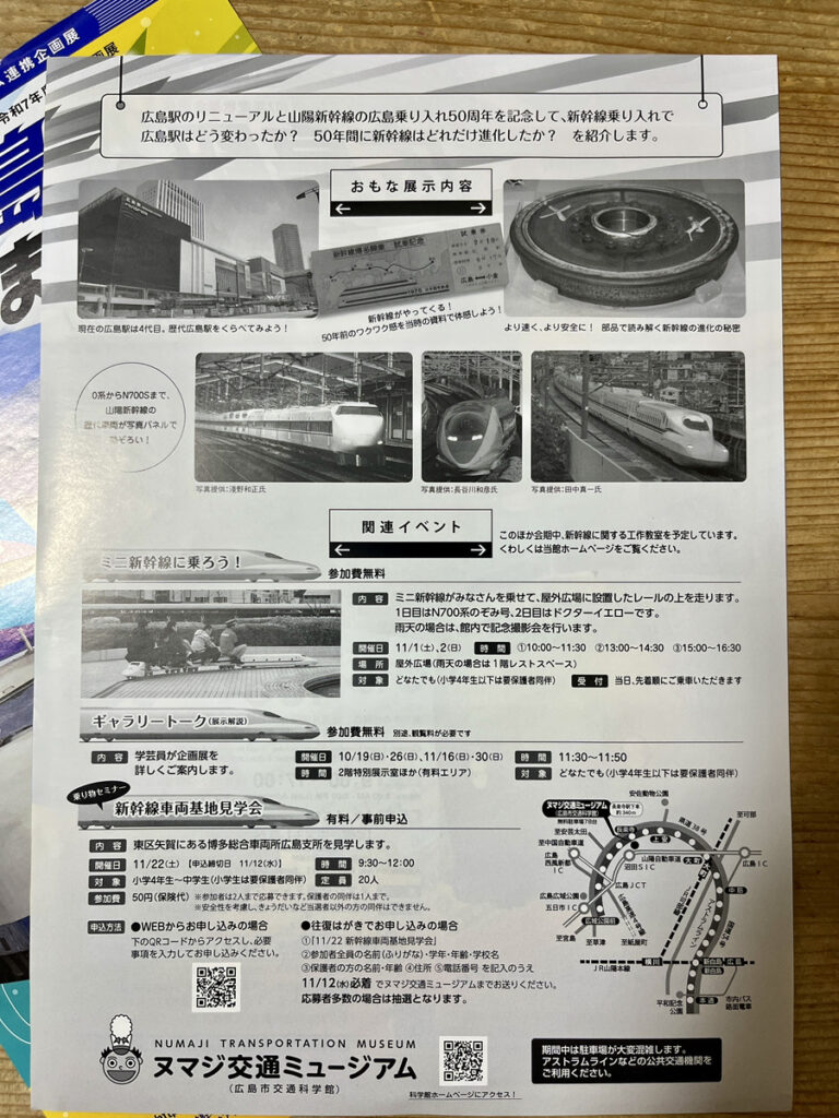 広島市安佐南区長楽寺にある「ヌマジ交通ミュージアム」で、秋季企画展『広島駅のいまむかし~新幹線がやってきた~』が開催されます 。