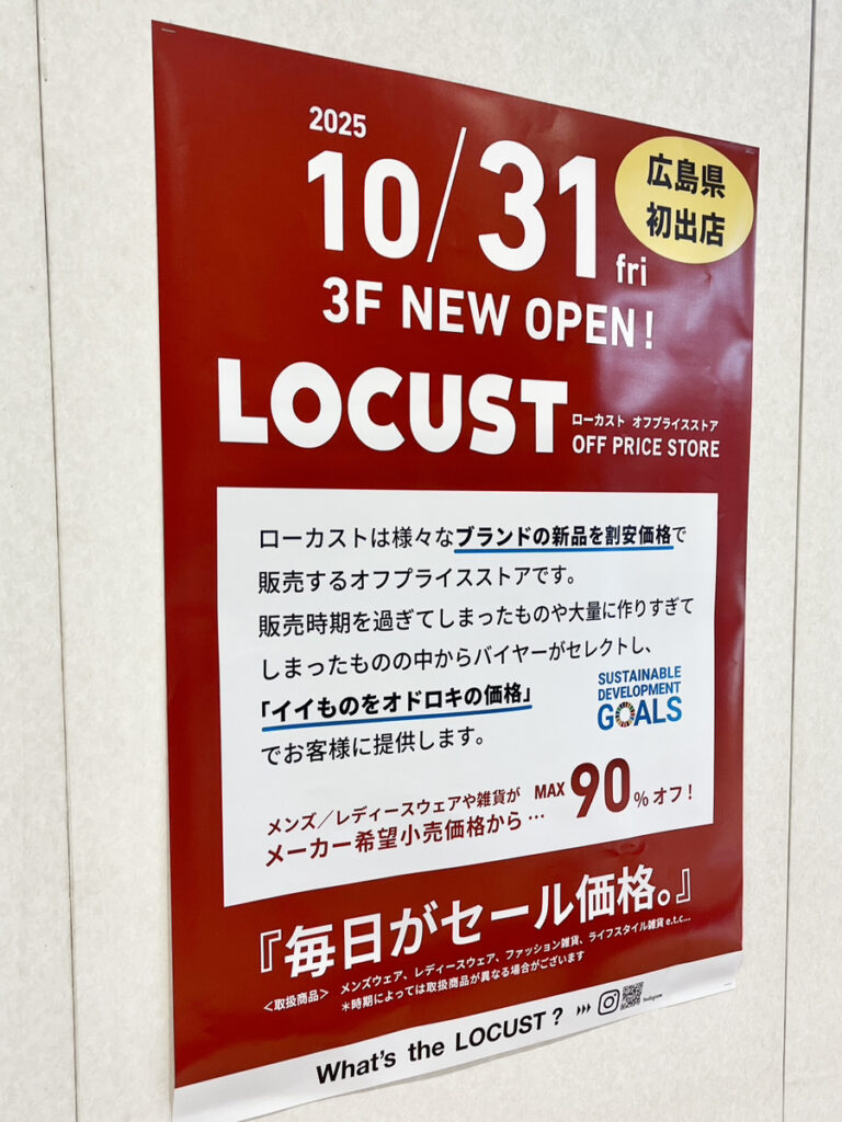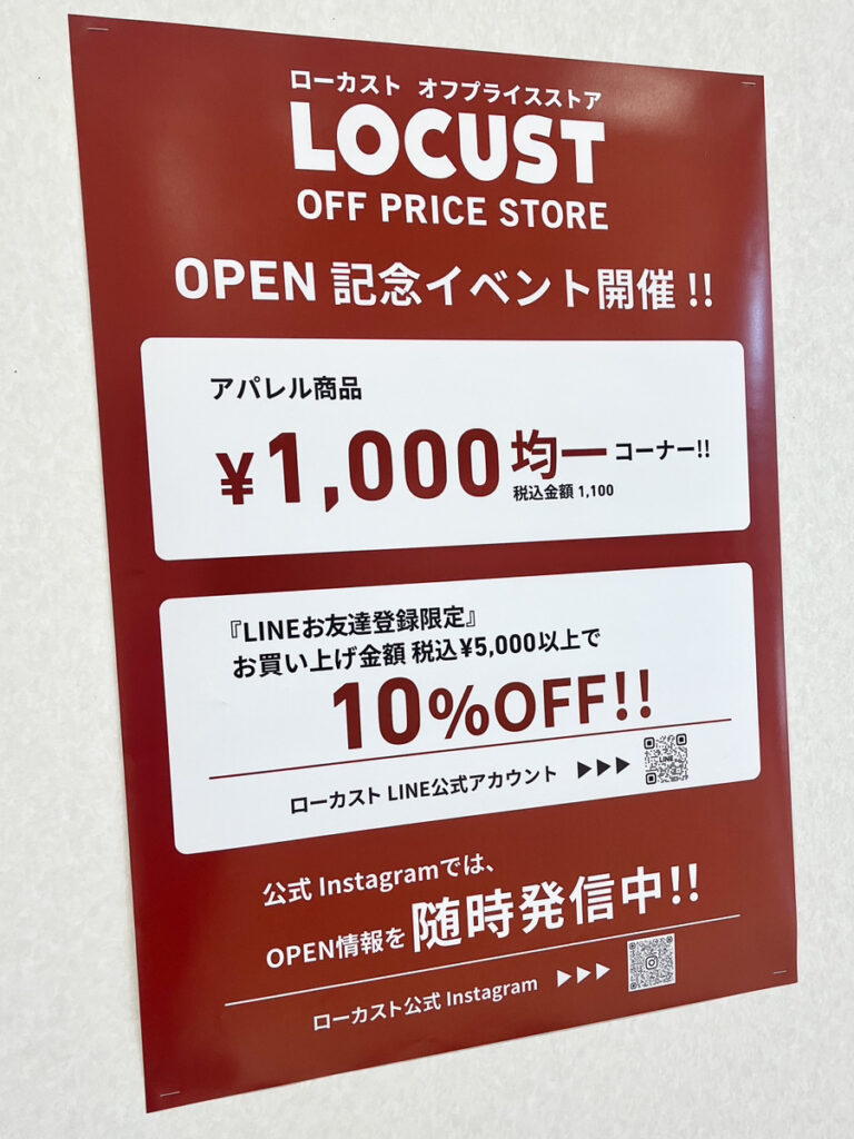 そのダイソーがあったところに、2025年10/31日(金)「LOCUST(ローカスト)」というお店がオープンするみたいです。