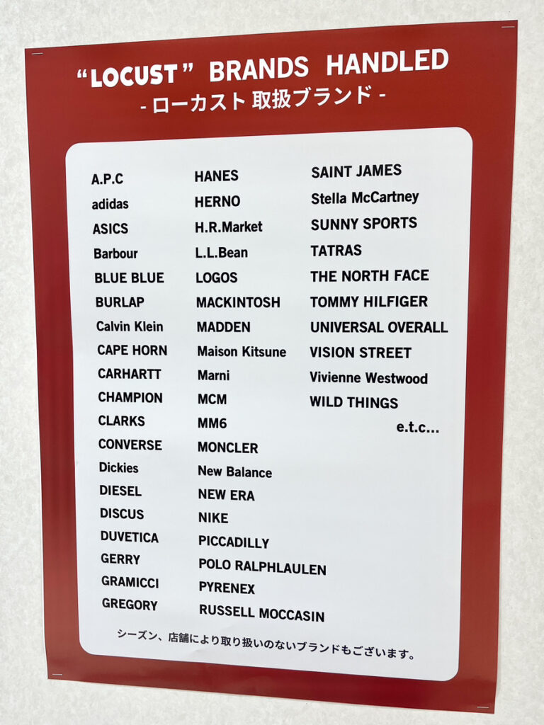 ローカストで取り扱うブランドの一覧も載っていました。有名ブランドがたくさんありますね!