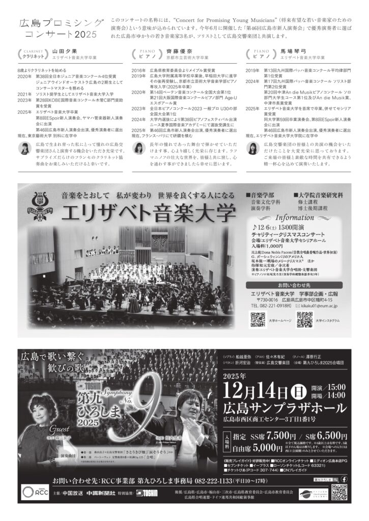 12/3(水)、JMSアステールプラザ(広島市中区)で「広島プロミシングコンサート2025」が開催されます。(主催:広島市文化財団イベントページはこちら