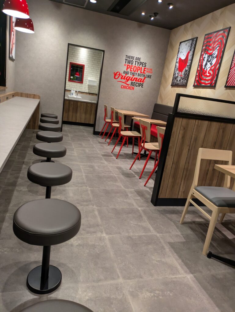 「ケンタッキー八木店が改装オープン。カーネルおじさんはまだいませんでした。店内画像送りますね」