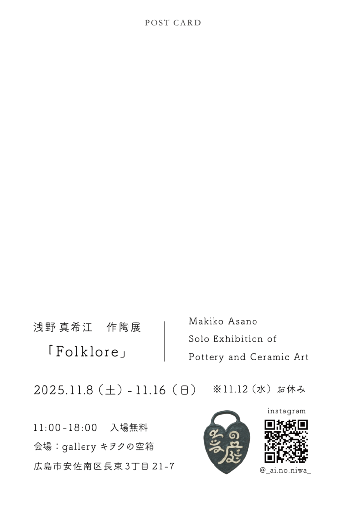 会場は安佐南区長束にあるgallery キヲクの空箱。2025年11/8(土)~16日(日)に開催するそうです。(※11/12はお休み)