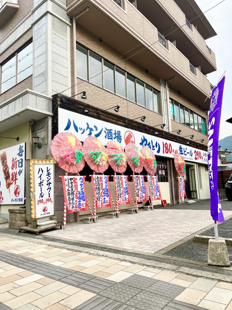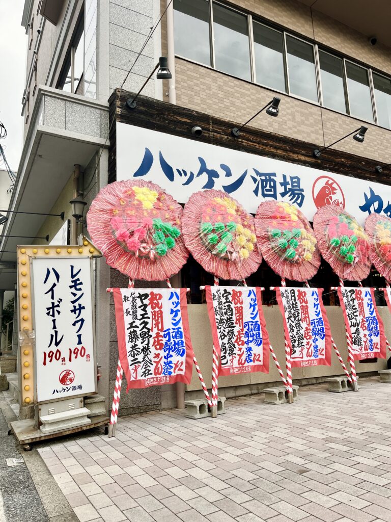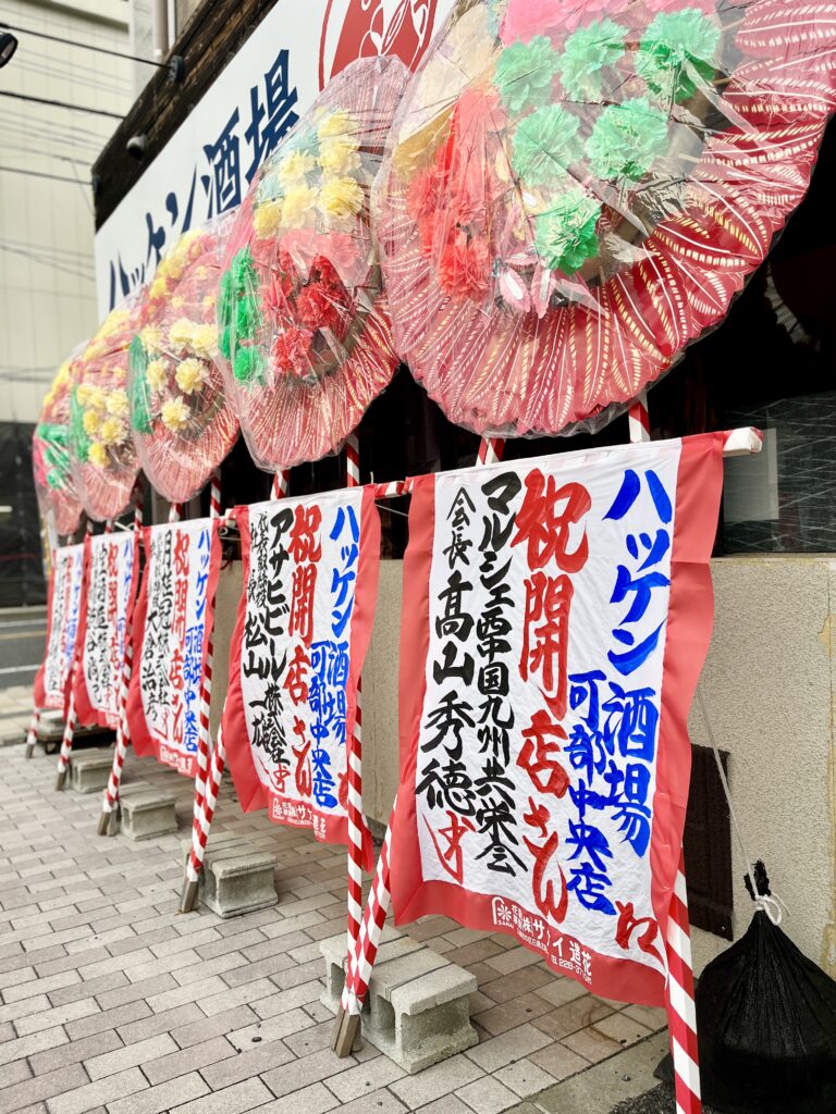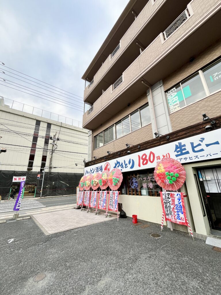 広島市安佐北区可部の焼鳥居酒屋店「八剣伝 可部中央店」が業態変更し、「ハッケン酒場 可部中央店」としてリニューアルしていました。おめでたい雰囲気でした。