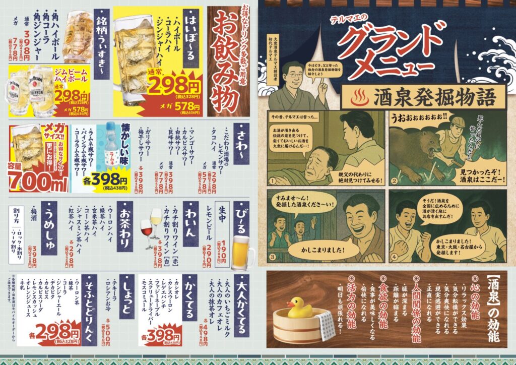 さて、「大衆酒泉テルマエ」についてです。『昭和の大衆銭湯』をモチーフにしたユニークな居酒屋のようで、札幌〜福岡まで全国16店舗で展開。銭湯のような空間で、リーズナブルにお酒と食事を楽しめる新スポットとして注目されています。SNSやメディアで大きく取り上げられ、若者を中心に話題を集めているそうです。今回、広島初出店とのことです。