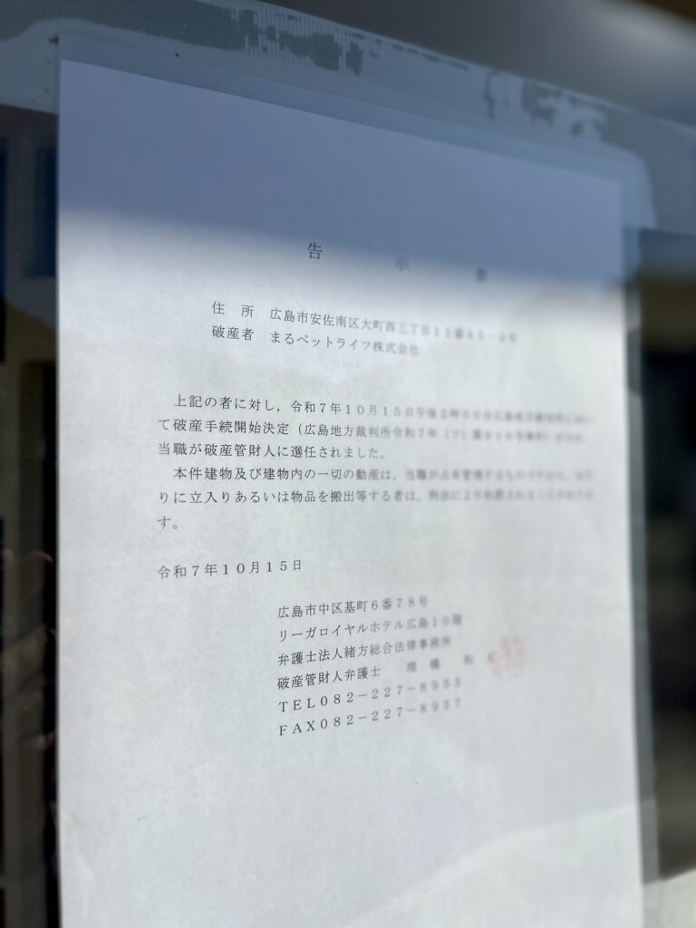 県道38号線・安川通り沿いに、今年2025年7月に移転オープンした「ひろしま犬と猫の病院」が残念なことに閉院となったようです。