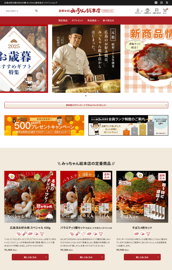 さて、「お好み焼みっちゃん総本店」は公式通販サイトを運営しています。コチラが公式通販サイトです。