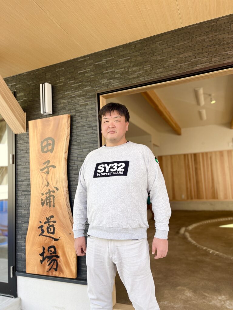 コチラは「田子ノ浦道場」館長の大和充さんです。広島市西区出身の元相撲力士さんで、四股名(しこな)は「大和富士」(最高位は西幕下2枚目)です。背が高かったー。