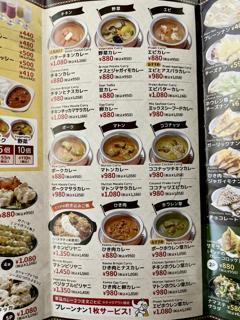 公式ホームページにはこだわり・特徴が書かれていました。自慢のカレーはインド直輸入の30種類以上の天然スパイスのみで作り、本場インドの風味を生かしつつ、日本人の味覚に合うようにアレンジしているそうです。さらにナンはインド直輸入のタンドール窯と炭を使って約280度の高温でじっくり焼き上げ、外側はパリっ、中はモッチモチの食感に仕上げているそうです。