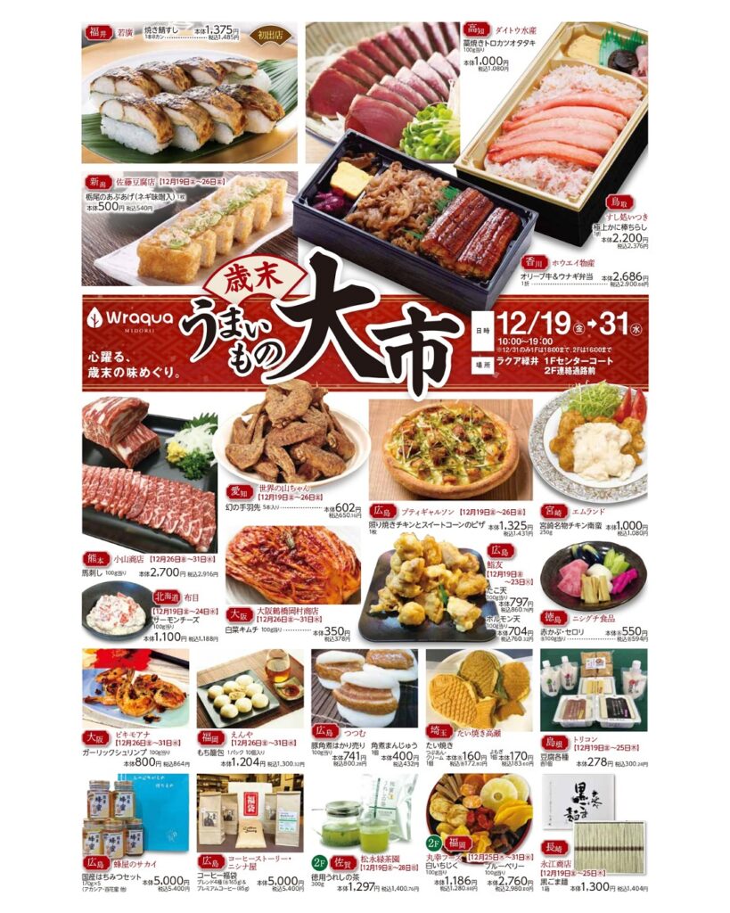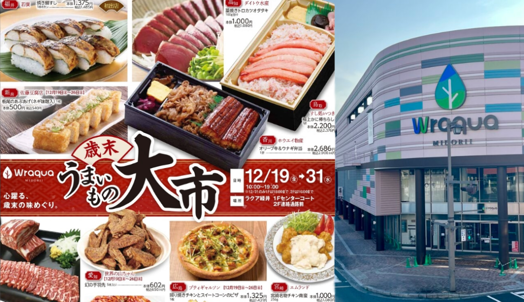 広島市安佐南区緑井にある「ラクア緑井」で、2025年12/19(金)~31(水)に『歳末うまいもの大市』が開催されるようです。公式インスタグラムに投稿されていました。