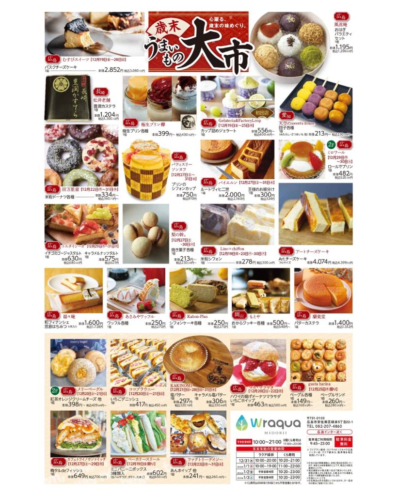 【冬のおいしい♡】12/19(金)~31(水)、「ラクア緑井」(安佐南区緑井)で『歳末うまいもの大市』が開催。県内外から約50グルメがやってくる。