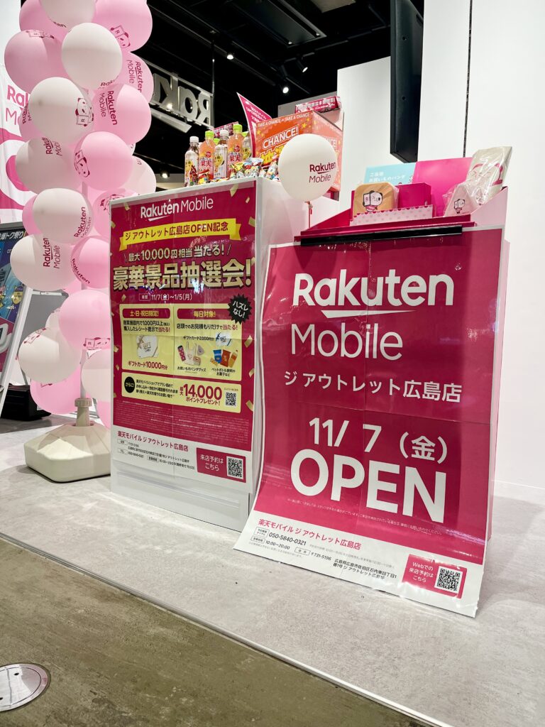 中国・四国地方最大級のアウトレットモール「ジアウトレット広島」(佐伯区)の「にしかぜライナー」というグルメエリア近くに、「楽天モバイル ジアウトレット広島店」がオープンしました。オープン日は2025年11/7(金)です。おめでとうございます!