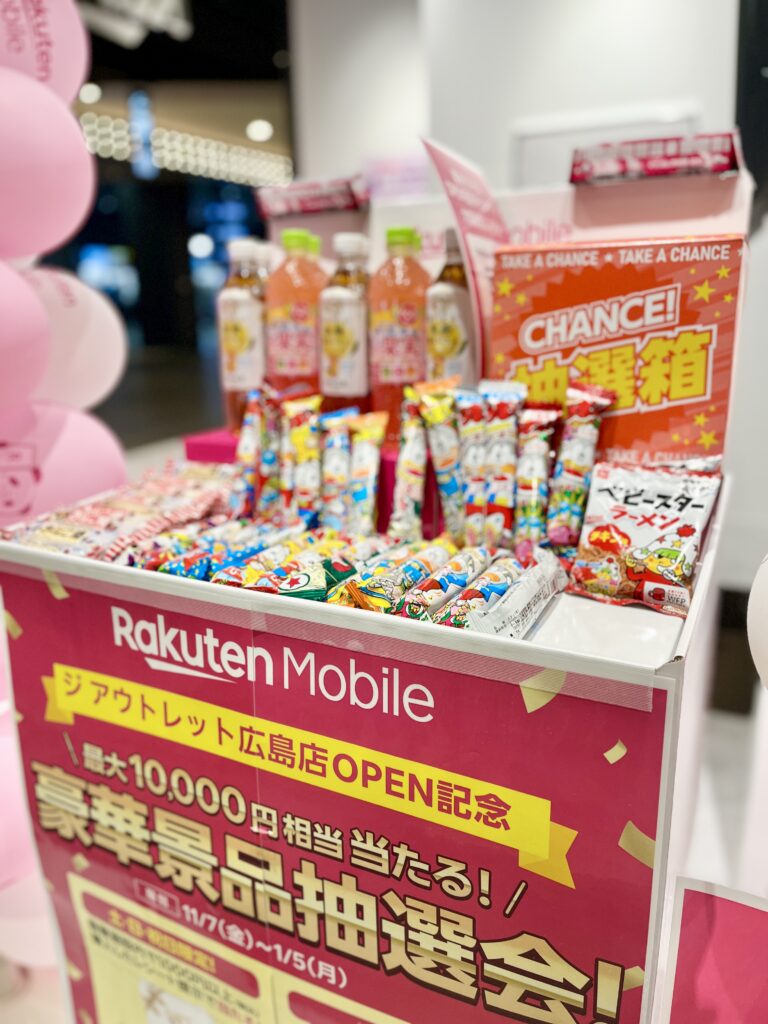 さて、「楽天モバイル ジアウトレット広島店」では来年1/5(月)までオープン記念特典があるようです。