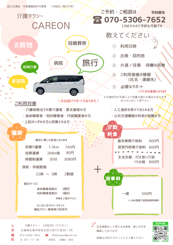 「安佐北区にて介護タクシーを新規で開業したので紹介していただけたらと思い連絡しています」