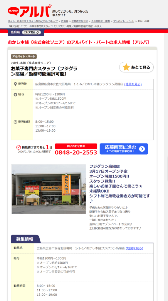気になるオープン日についてです。全く見つかりませんでしたが、求人情報には3/17(火)予定と書かれていました。オープン時給は1500円とのことです。▼求人情報より
