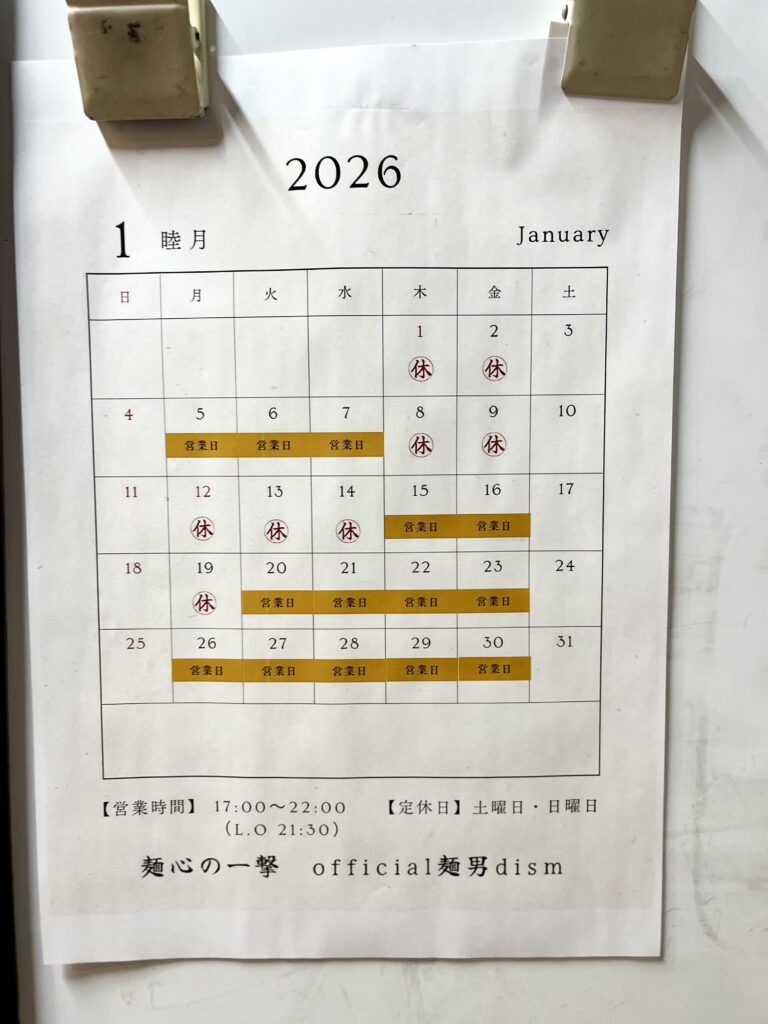 そんな「麺心の一撃 Official麺男dism」で、2026年1/27(火)~29(木)の3日間限定で新メニュー『噂の家系ラーメン』を提供するそうです。