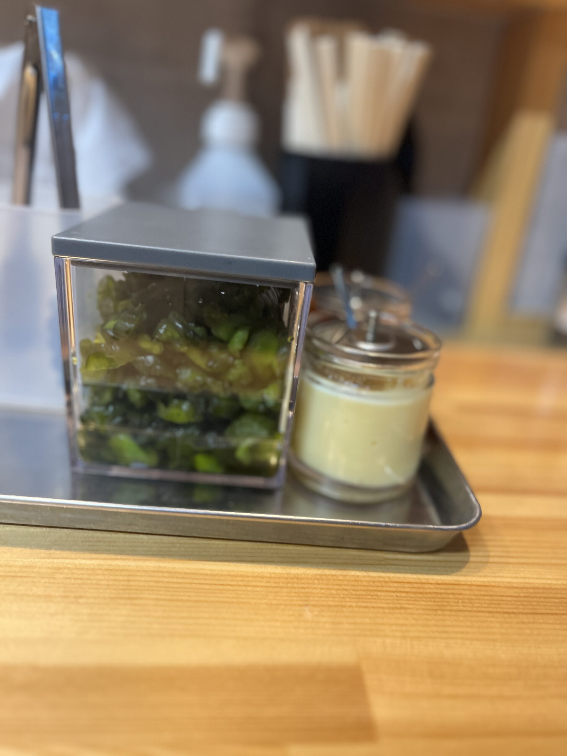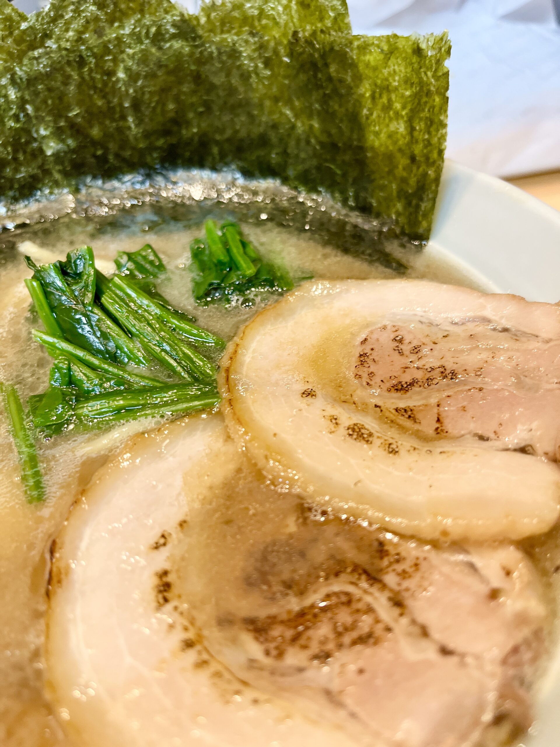 大きな海苔とホウレンソウが載っています。甘めのホウレンソウにスープが染み渡り、、、これが三浦店長にオススメされたごはんと超マッチしました。