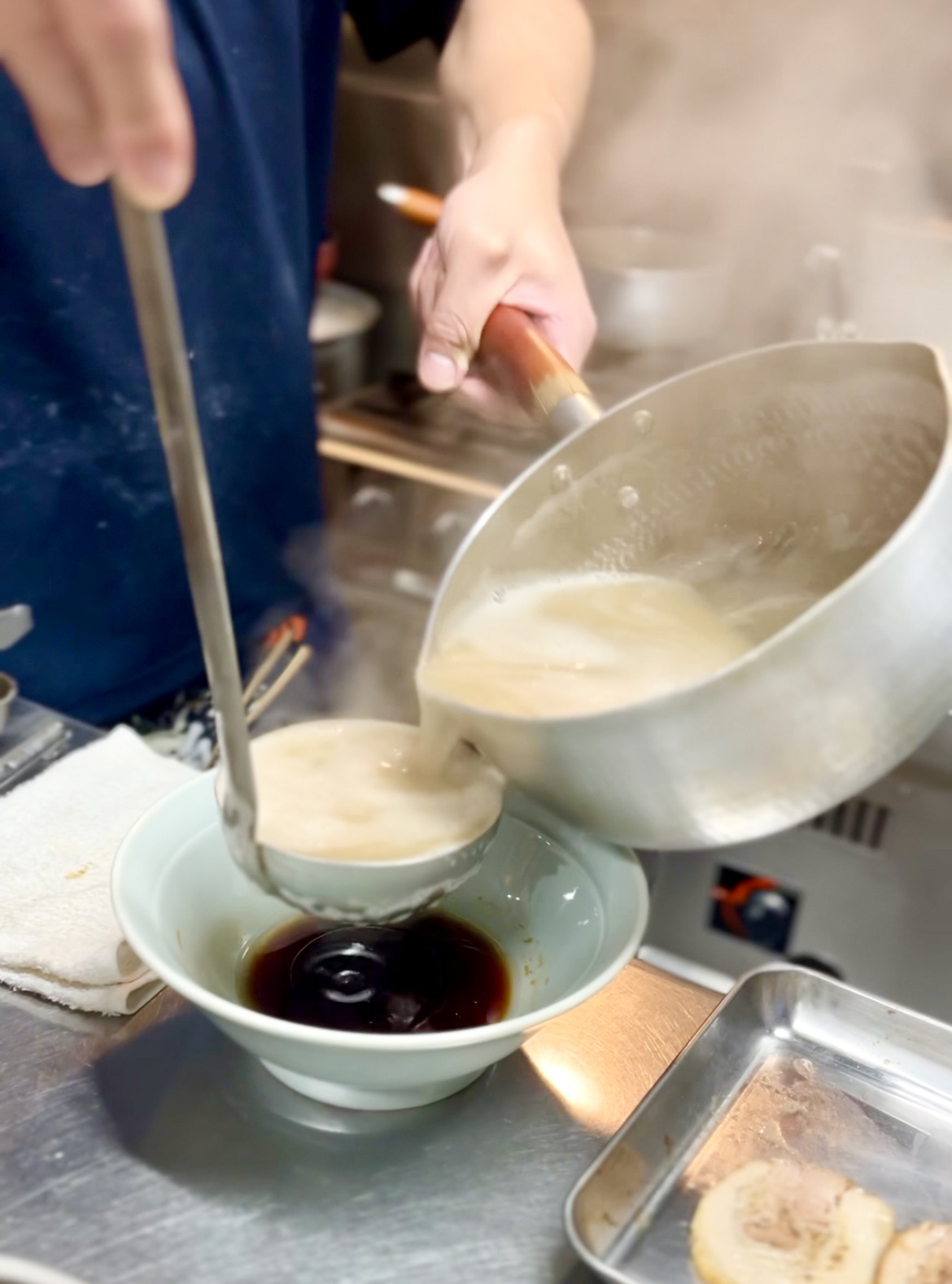 豚骨を長時間煮込んだコクがありつつ、脂を抑えて女性も完食できるあっさりした味わいです。