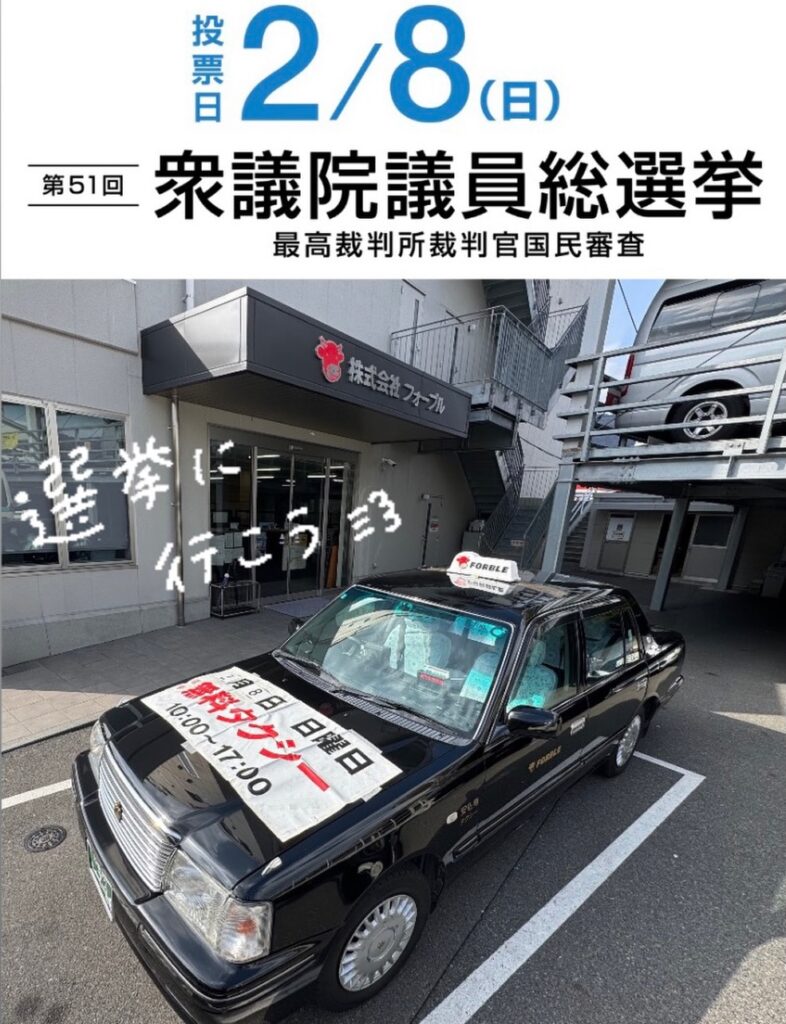 今度の2/8(日)の「第51回 衆議院議員総選挙」で、なんと自宅と投票所の無料タクシーの運行を行うそうです。時間は10:00~17:00、安佐南区内で投票する人限定です。調べてみると、投票率を上げることに貢献するために、前身の第一タクシー時代の2005年から国政選挙などで続けているそうです。