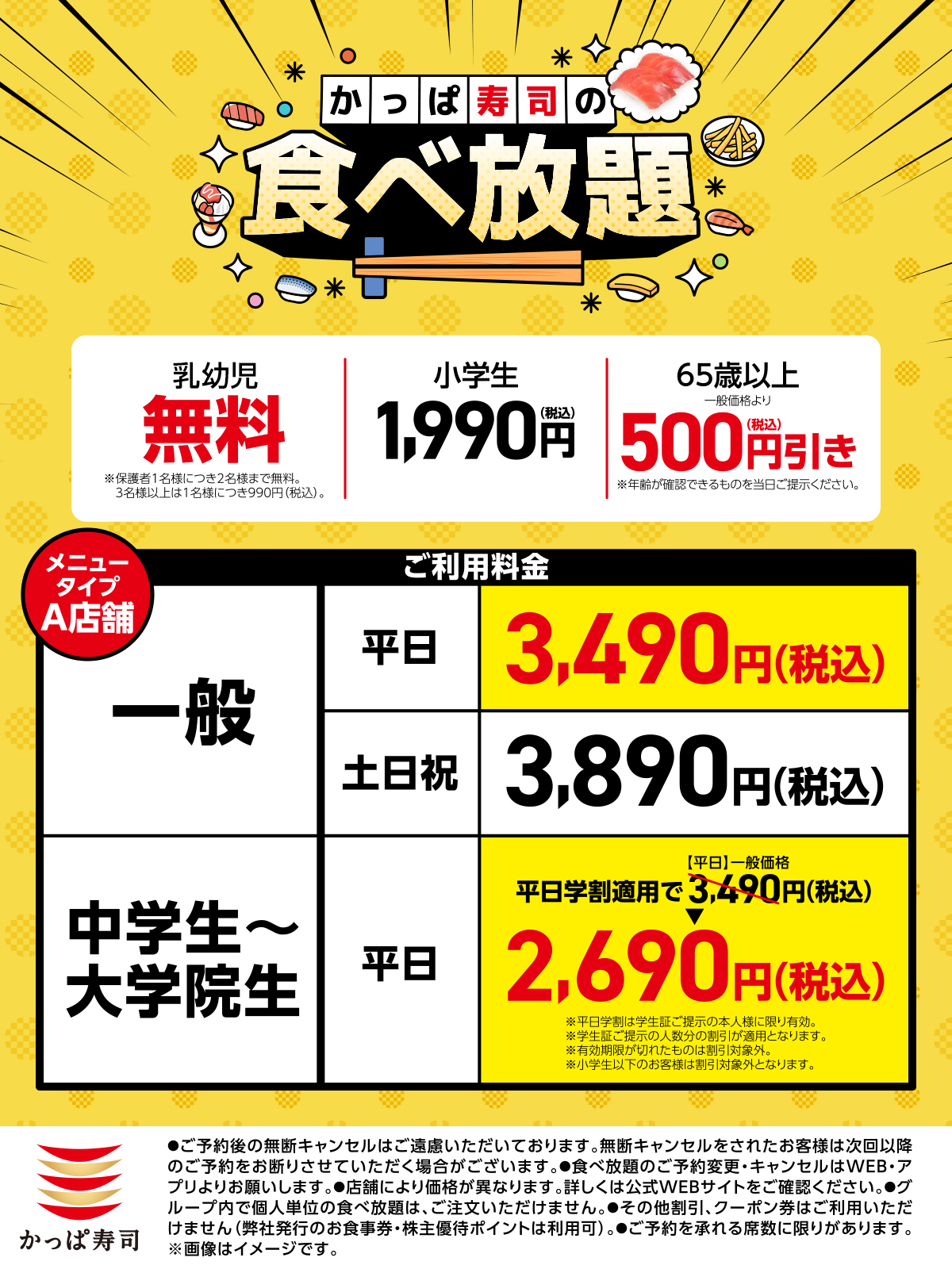 中学生〜大学院生: 平日2690円、土日祝3890円