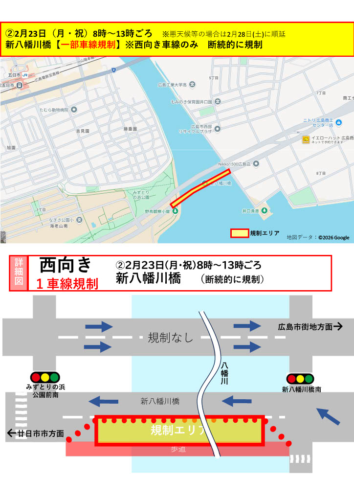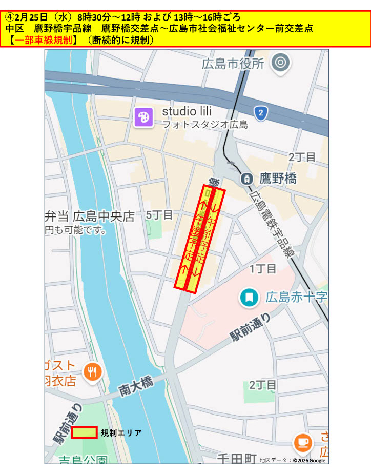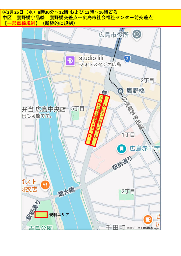 2/25(水)中区 鷹野橋交差点付近