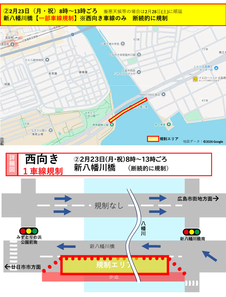 2/23(月)西区 新八幡川橋(「みずとりの浜公園」近くの橋)