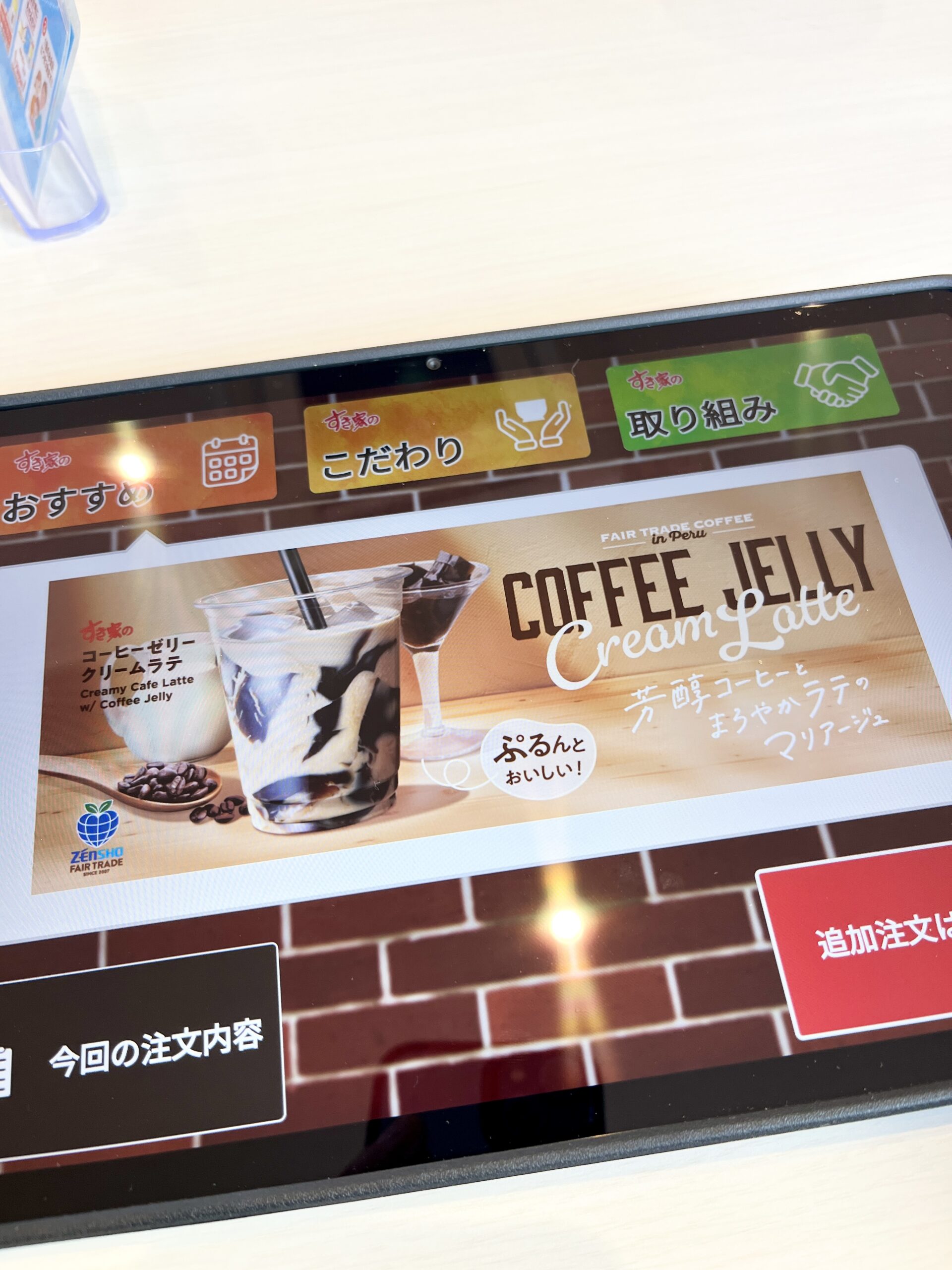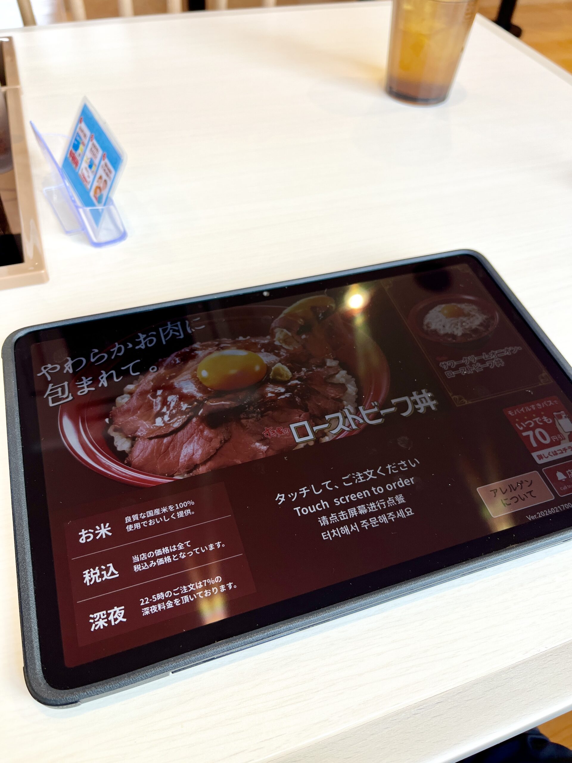 テーブル席は通常のタッチパネルで注文します。