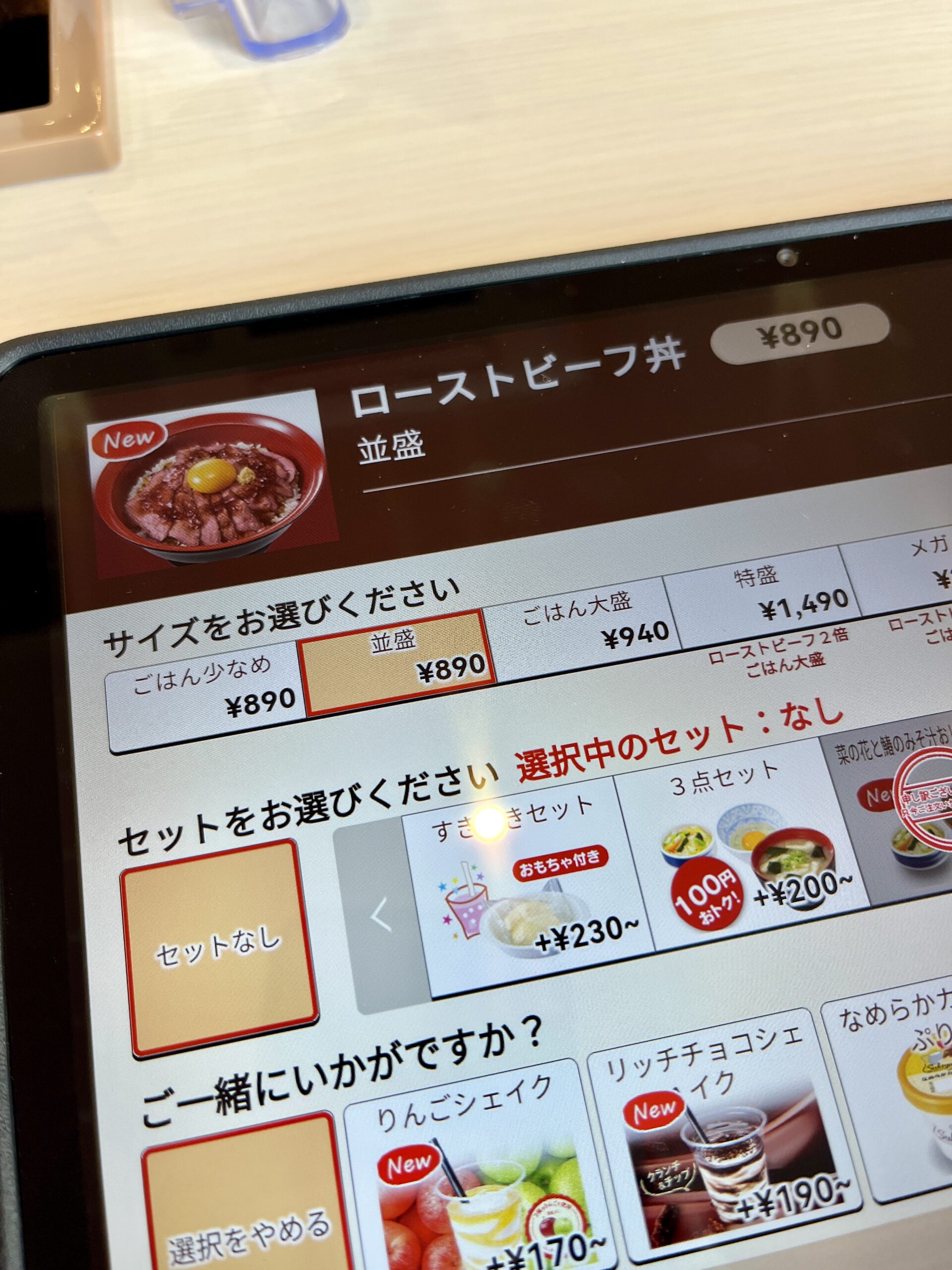 牛丼(並盛)+たまごセットは…