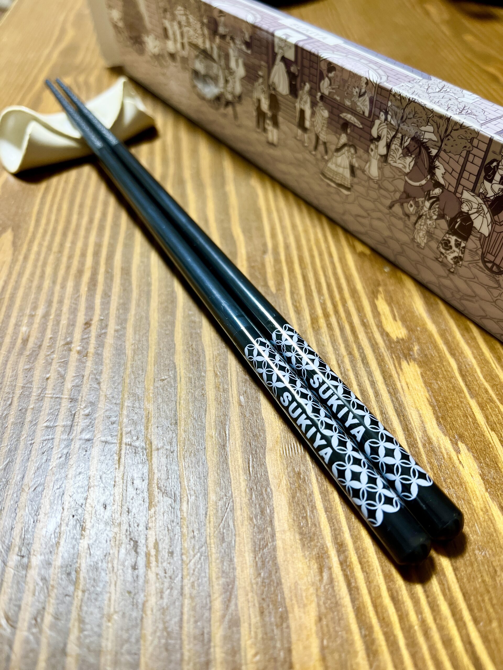 食事したのは、リニューアルオープン日の昼でした。レジでリニューアルオープン記念をもらいました。帰宅して開封すると箸でした。やったね!