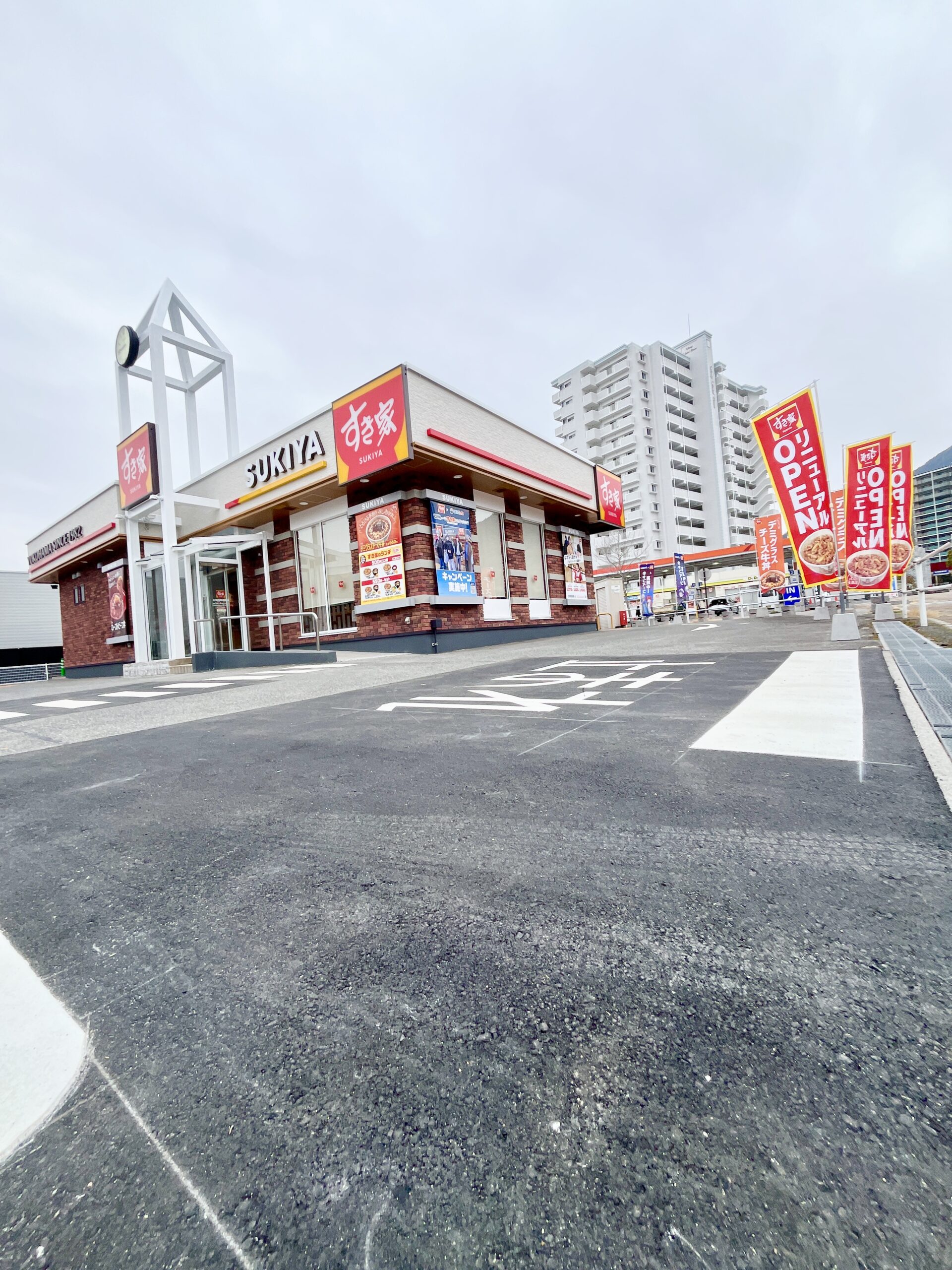2026年2/20(金)、広島市佐伯区石内北にある牛丼チェーン店「すき家 広島西風新都店」がリニューアルオープンしました。おめでとうございます! 写真はオープン初日の早朝のもようです。
