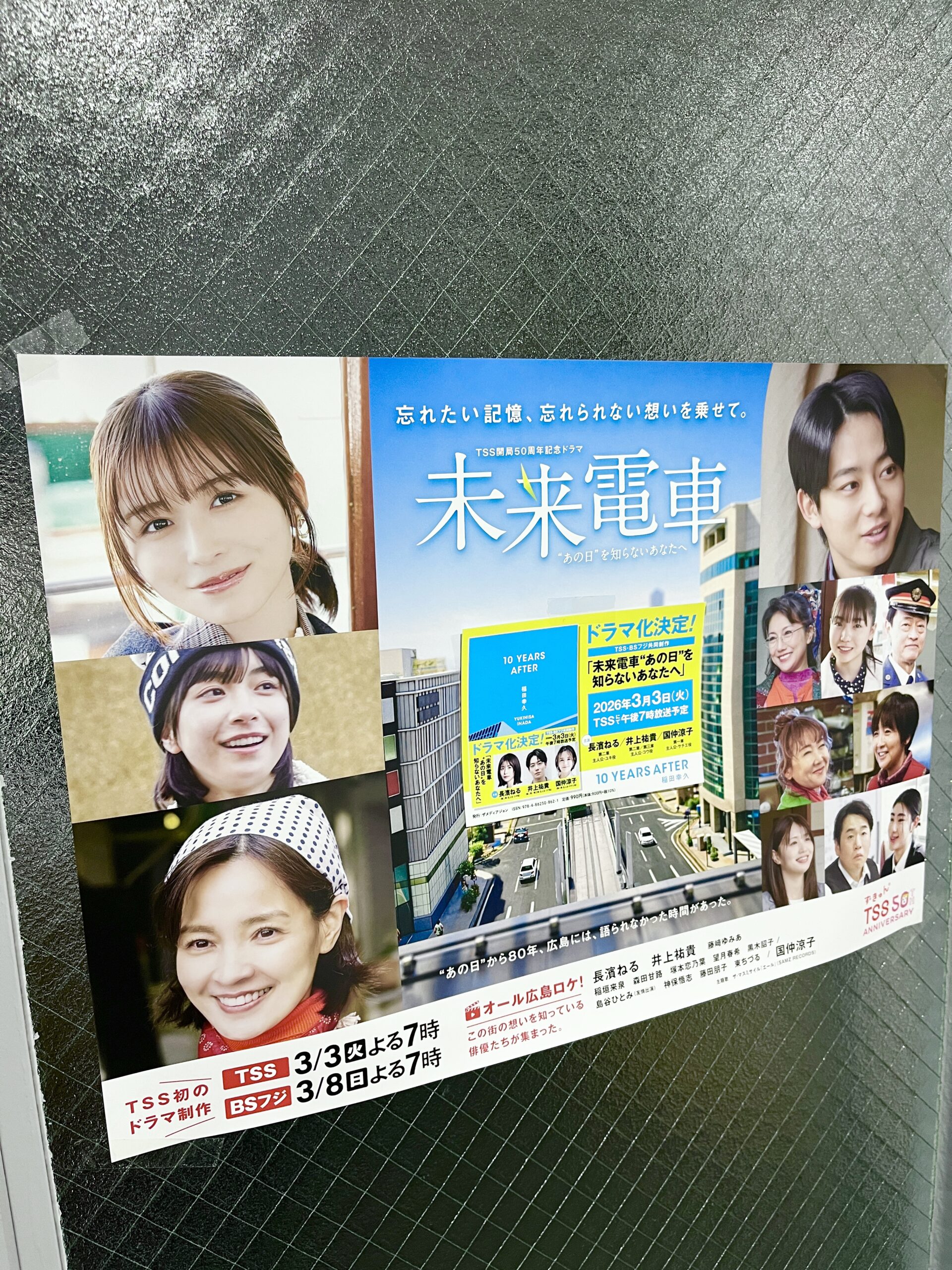 昨年2025年11月、TSSテレビ新広島は、開局50周年記念ドラマとして『未来電車 “あの日”を知らないあなたへ』を制作することを発表しました。このドラマは、被爆80年となる広島を舞台に、過去・現在・未来の三つの時代が交錯する記憶の物語です。