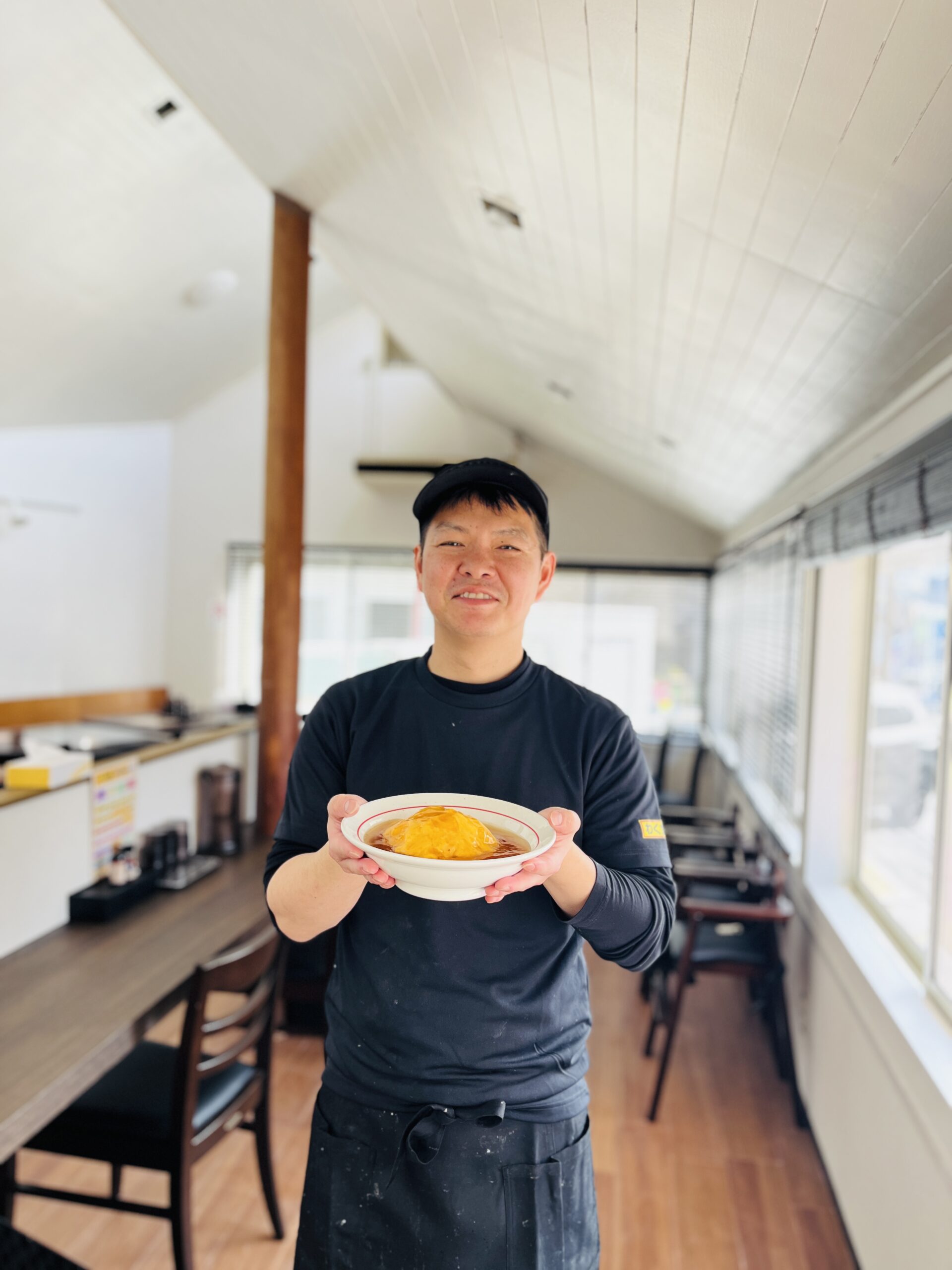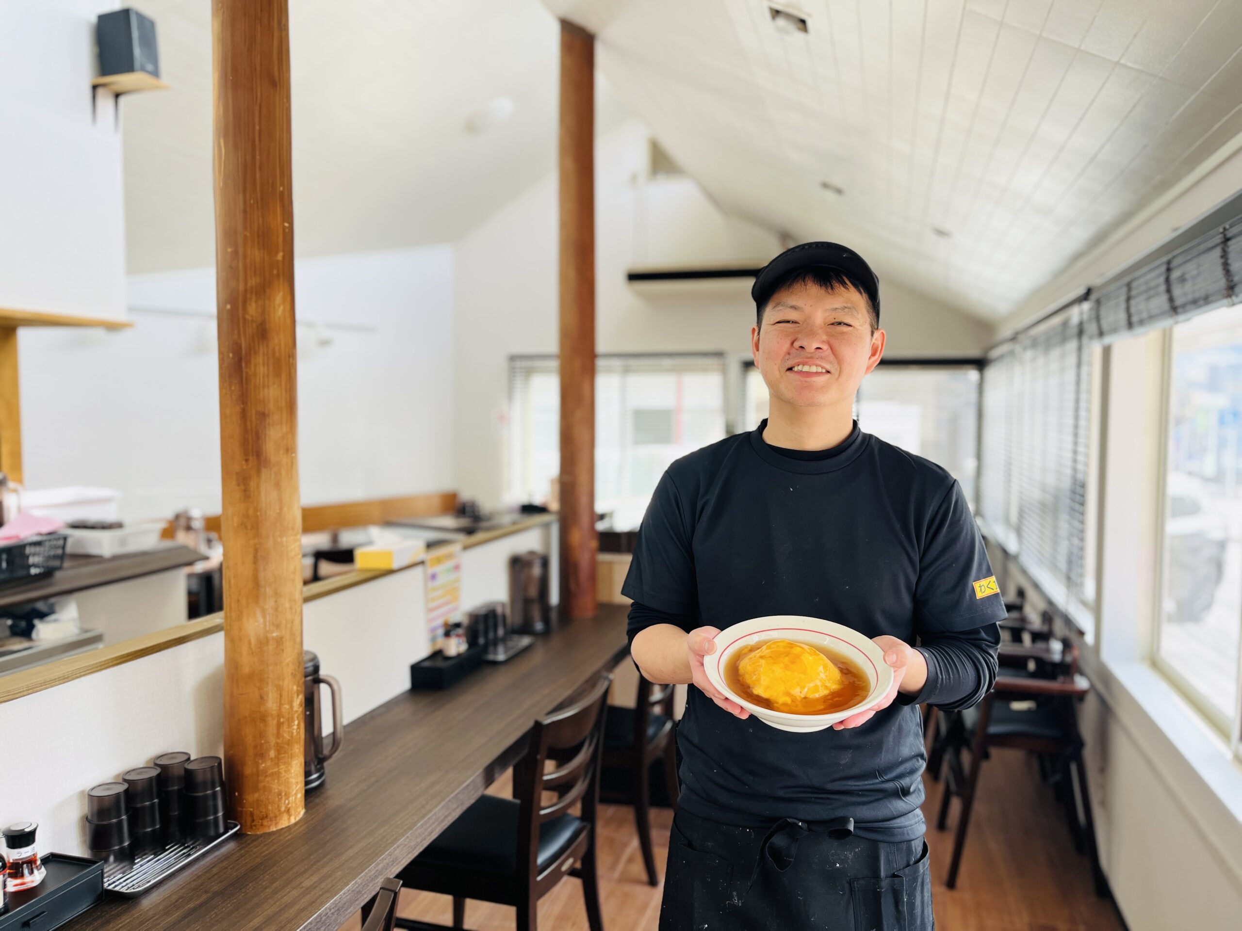 ▼広島市安佐動物公園に向かう道路沿い、広島市安佐南区上安に2026年3/17(火)オープンした「天津飯の店 わく食堂」店主の川端さんです。今回、なんとオープン初日に緊急独占インタビューが実現できました。ランチタイムに、メインメニューである天津飯を食べに行きましたっっっ! 詳しくはのちほどです。