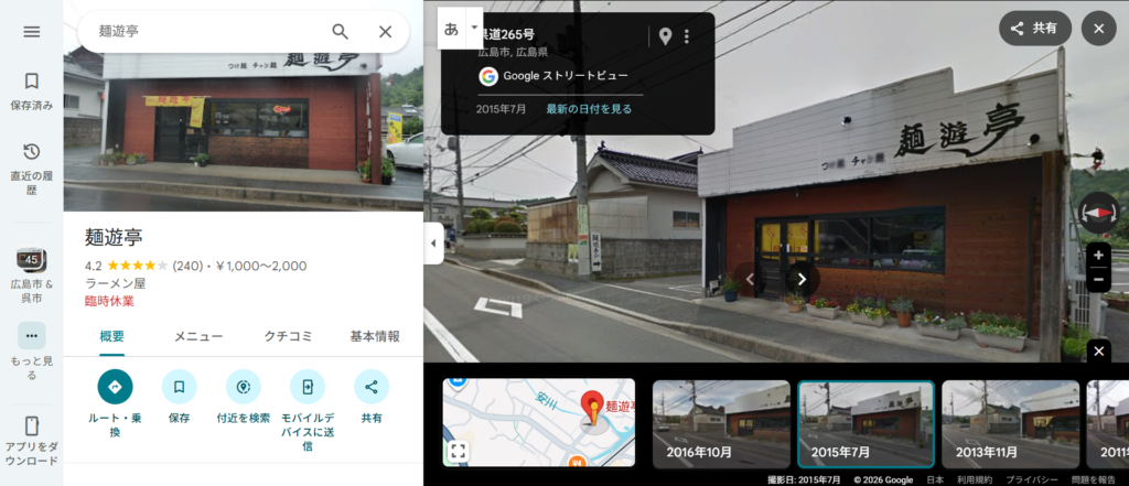 昨年2025年9月から臨時休業していた広島市安佐南区伴中央の「麺遊亭」が、閉店していました。