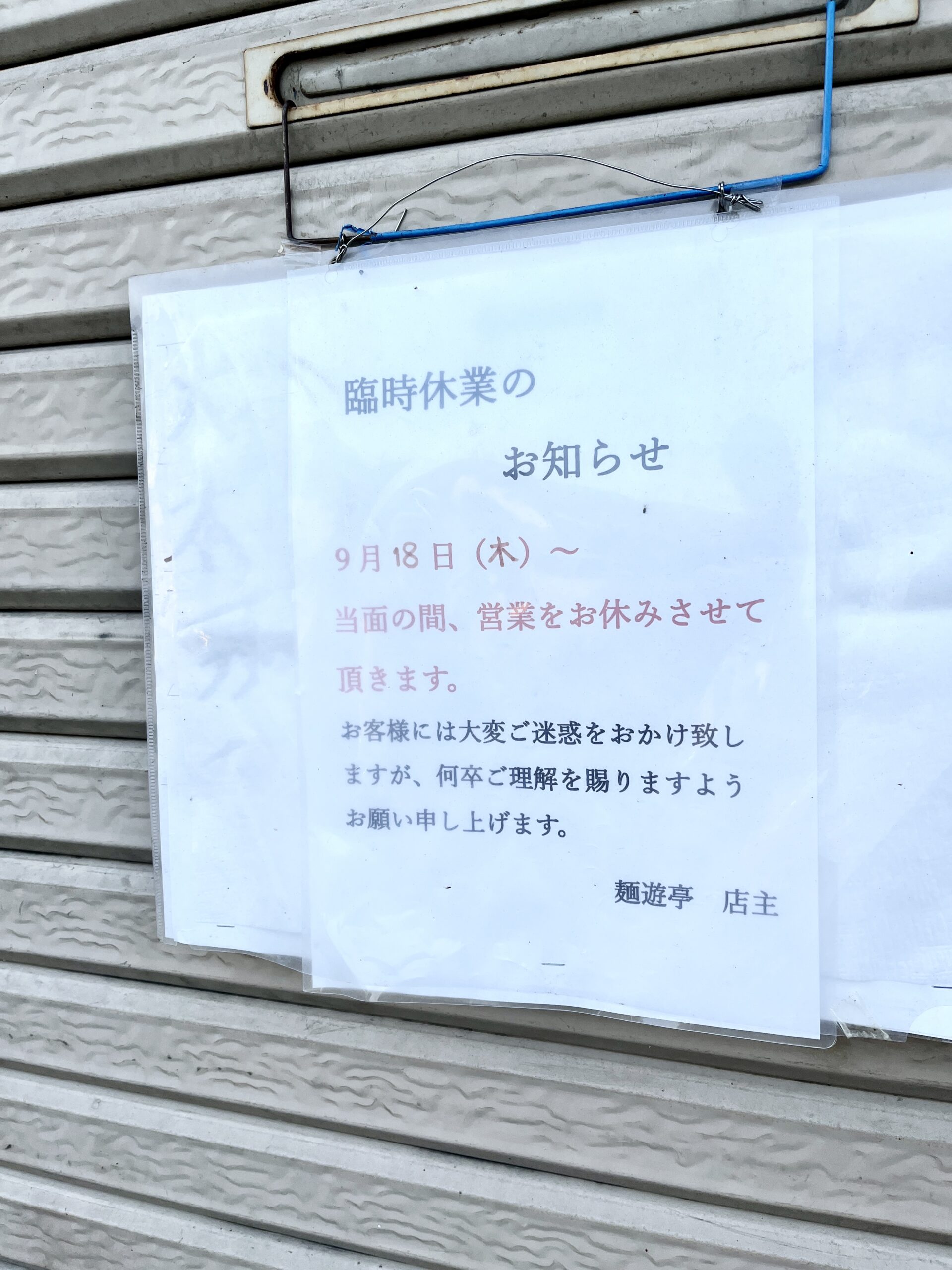 長きにわたり、おいしい麺料理でご近所のお腹を満たしてくれた「麺遊亭」。長い間、いままでありがとうございました。