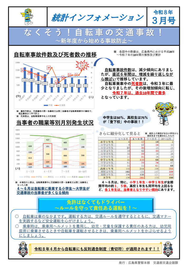 「自分は気をつけているから大丈夫」と思いがちですが、他人事ではありませんっっっ! 今年(令和8年)の4月からは自転車のルールが厳格化されます。さらに実はいま、広島県内では自転車事故による死者数が過去10年で最多となったようです。