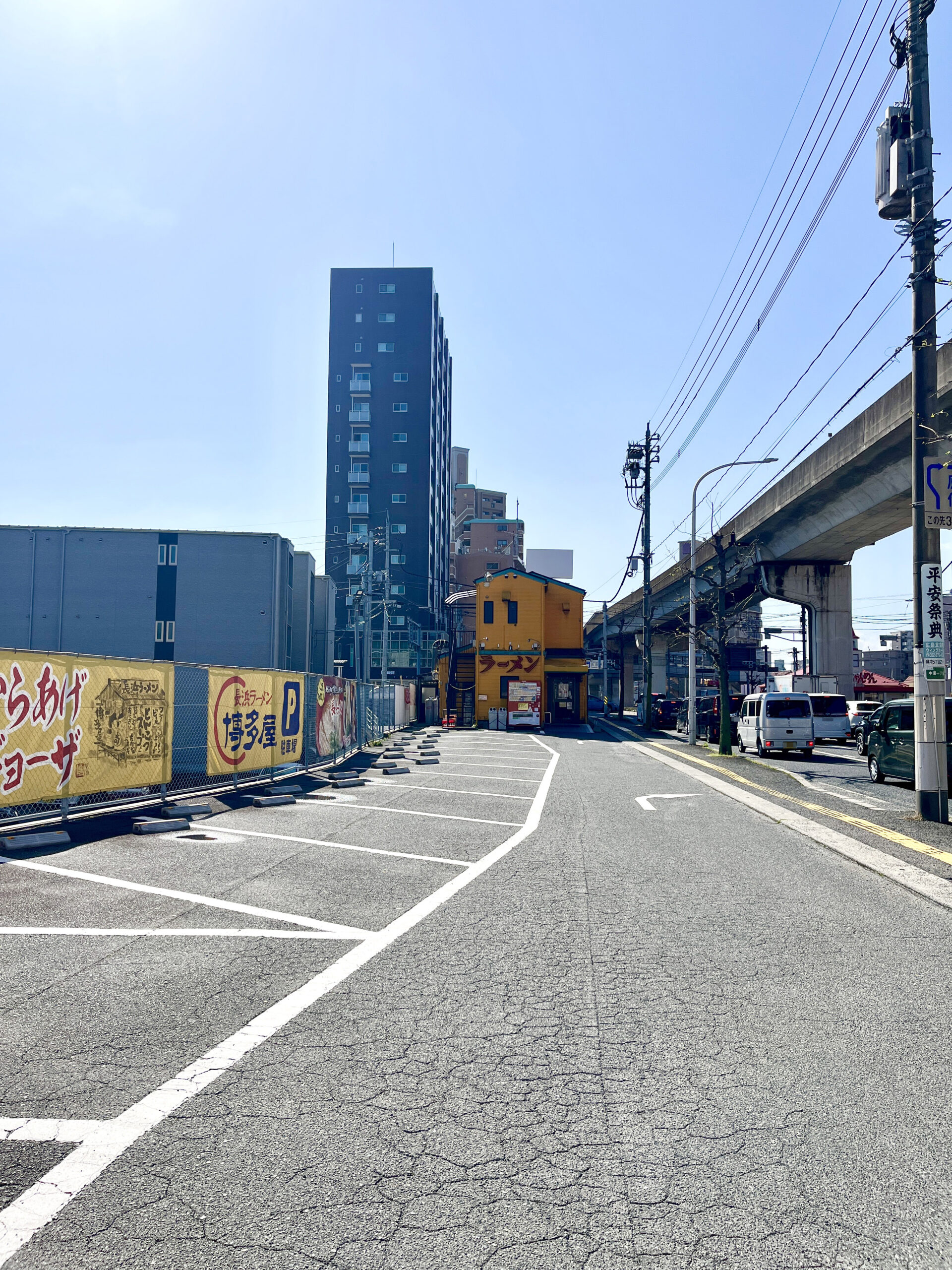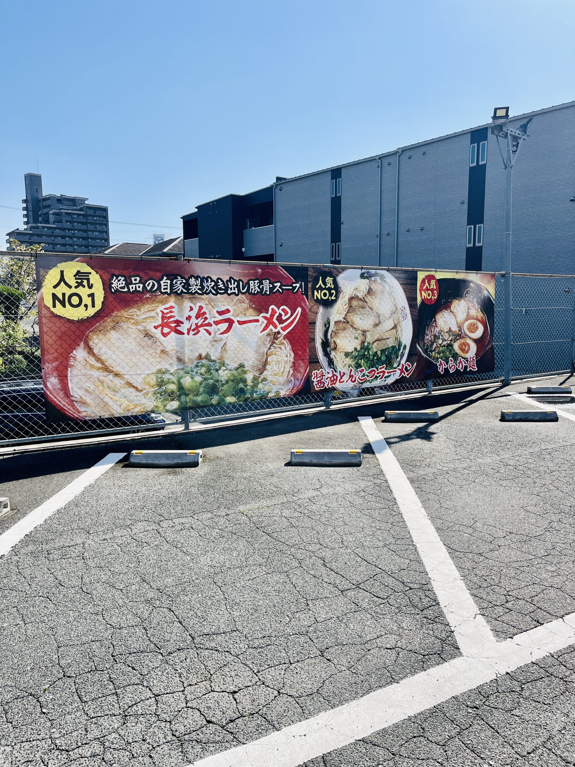 「長浜ラーメン博多屋 古市店」は交通量が多い道路沿いにありますが、駐車場が広く、比較的駐車しやすいです。