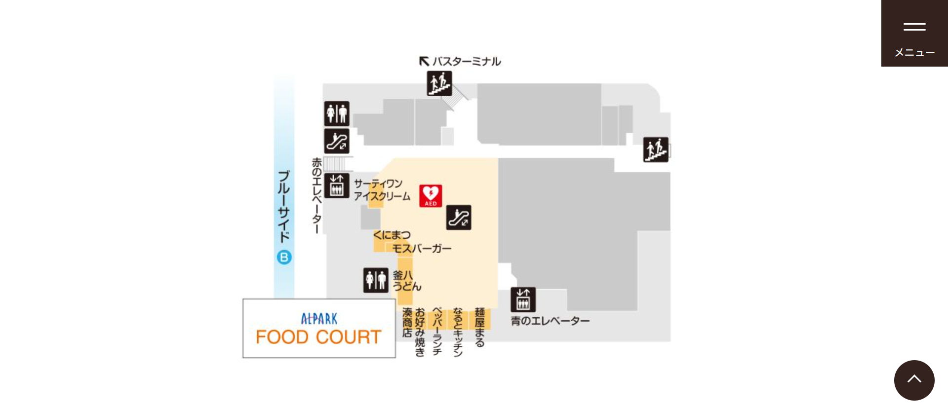 コチラはアルパーク公式ホームページに載っていた地下1Fのフロアガイドです。このグレーになっているスペースが、「ロピア アルパーク店」(仮)がオープンする場所になるのでしょうか!?