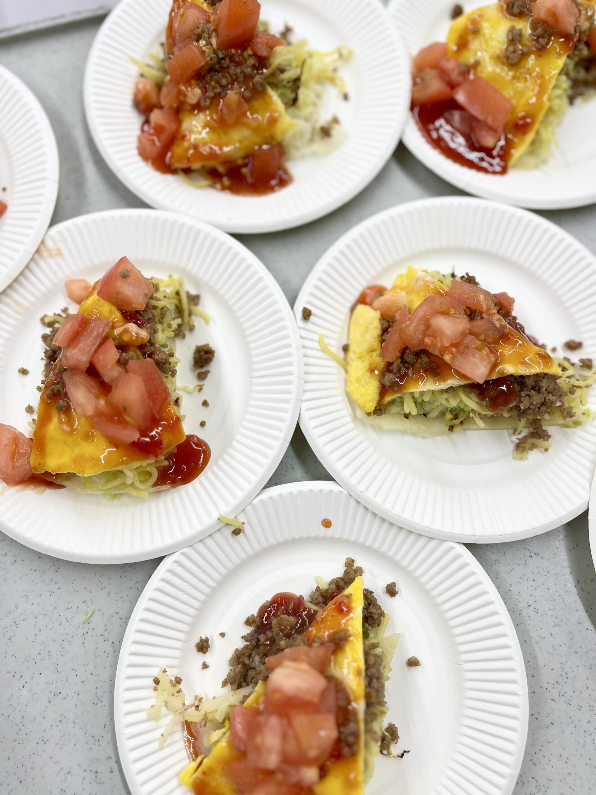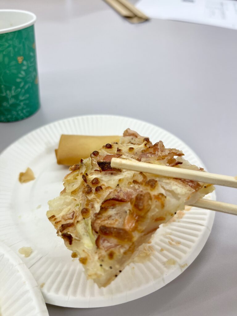 メニュー名は『タコス風お好み焼き』(1400円)です。※写真は試食用でカットされています。
