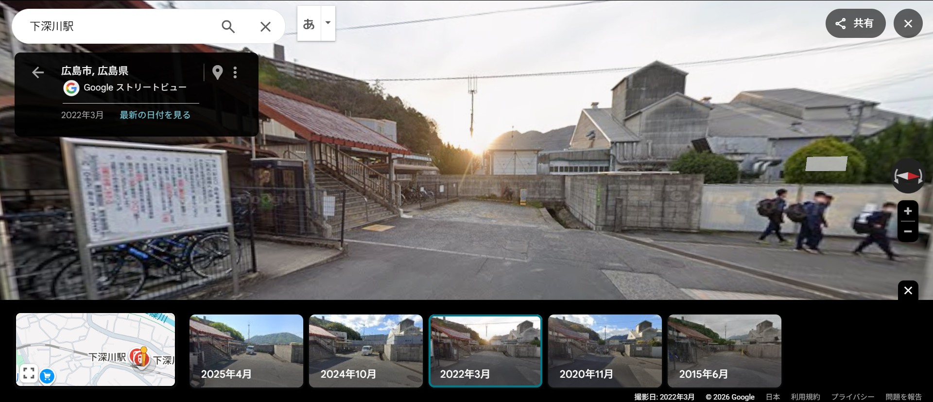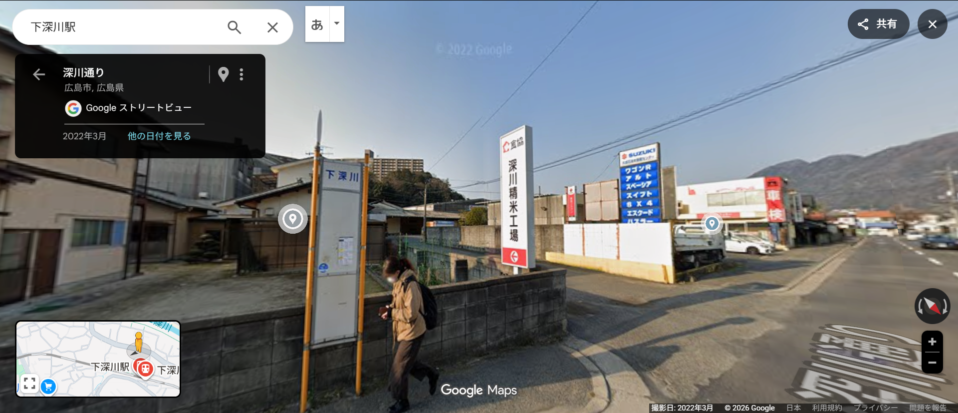 ということで現地に行ってきました。コチラはJR芸備線下深川駅の出入口1側です。
